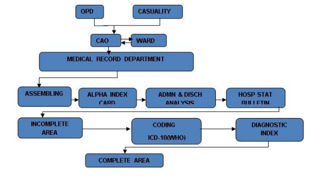 Flow Chart, Demonstrating the Function of Medical Record Department: The organization and management of In-patient Medical Record Services can be explained with the help of following flow chart:-